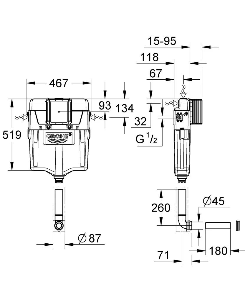 - Смывная труба изолирована для исключения конденсата крепежными накладками