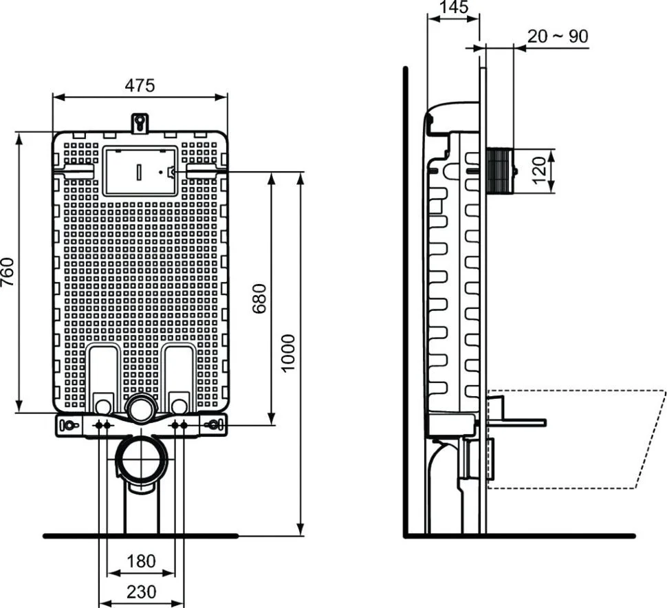 PROSYS 120 M Встраиваемый бачок для подвесных унитазов. Герметичный бачок в пенопластовой изоляции - для лучшей звукоизоляции. Для встраивания в капитальную стену. Рама тестирована нагрузкой 400 кг. Минимальная толщина 145 мм. Встраиваемый бачок с фронтальным механическим управлением. Возможно пневматическое или электронное управление при помощи переходников, приобретаемых дополнительно. Двойной смыв, пред-установка 6/3 л. Три варианта объема смыва с возможностью быстрой регулировки - 4/2, 6/3 или 7/3 л. Полипропиленовый бачок, устойчивый к термальным перепадам; прокладка против конденсата в комплекте. Технология SmartValve позволяет экономить до 9 л воды в день; маркировка CE EN 14055 CL1; тихий клапан, соответствующий стандарту NF, категория Class I; толщина бачка 120 мм. Аксессуары в комплекте: крепеж для унитаза, крепежи для рамы, подсоединения входящей и сливной труб, сливной патрубок (колено) с адаптором O90/110 мм, резиновая прокладка для унитаза O45 мм, запорный клапан G 1/2 ", сетка для облегчения ад