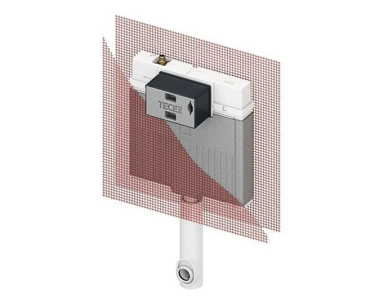 Смывной бачок TECE TECEbox Octa II для напольного унитаза с арматурной сеткой установочная высота 1075 мм ширина мм-440 глубина мм-80 для монтажа в несущую стену или перед стеной объем сливного бачка л-7 клавиша смыва-необходимо заказать