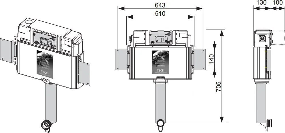 - Германия Смывной бачок скрытого монтажа TECE TECEprofil 9 041 008 обладает вместимостью 10 литров. Имеет два режима спуска воды: большой (4,5/6/7,5/9 л) и малый (3 л). Панель слива располагается фронтально. Для крепления бачка к стене в комплекте идут крепежные элементы, а для подсоединения унитаза – патрубок с резиновой манжетой. Бачок оснащен функцией отведения воздуха из помещения, для этого понадобятся вентилятор, выключатель и патрубок для вывода в вентканал.