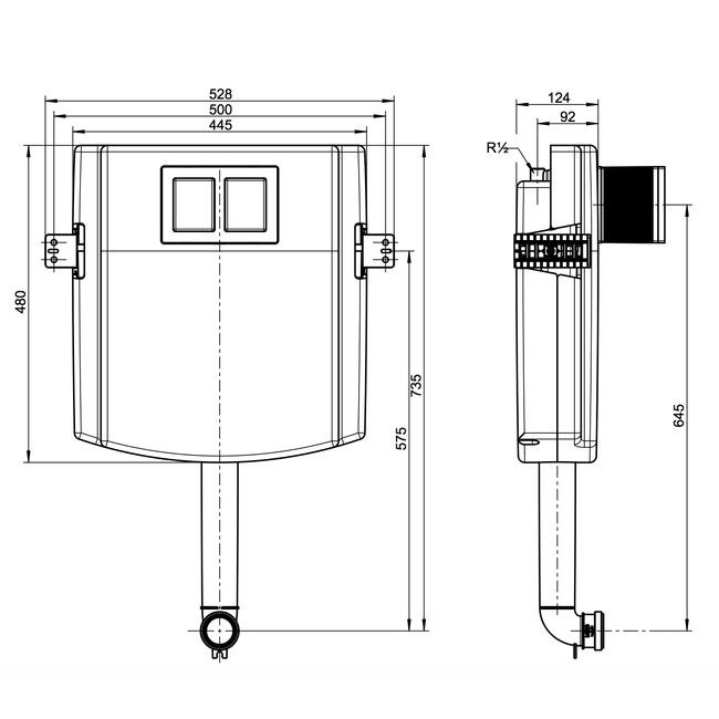 - Простая регулировка объема слива (на выбор 3/4,5 или 3/6 л)