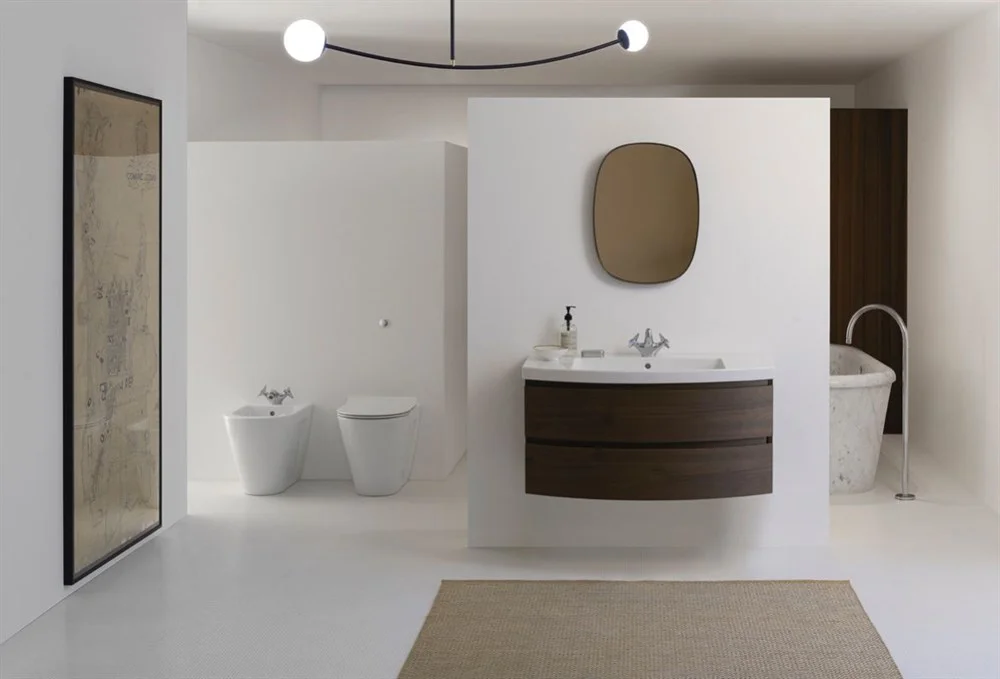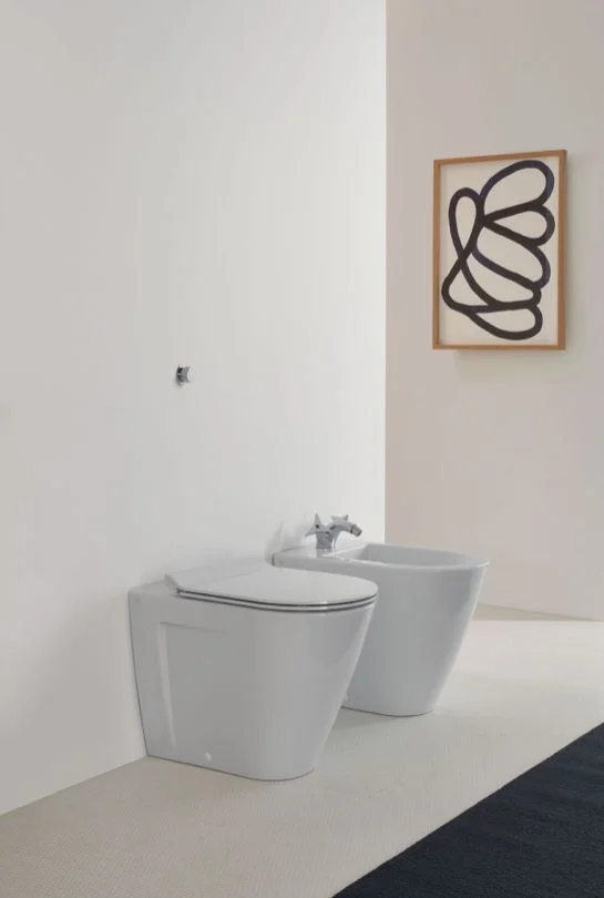 Бмиде напольное с переливом, 1 отверстие для смесителя, размер 36х55х42 см, цвет белый глянцевый.