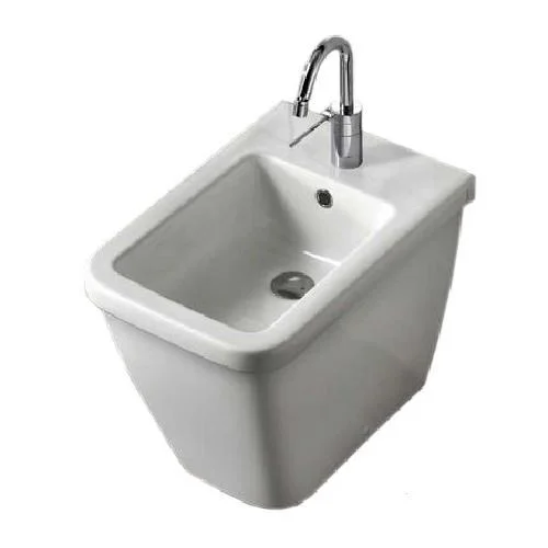 Биде напольное HATRIA Erika Pro Q YXHU01, в комплекте с крепежом к полу, пристенный монтаж. Одно отверстие под смеситель готово; с отверстием под смеситель.