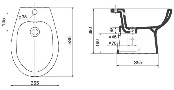 Ecco/Eurovit Напольное биде, 1 отверстие под смеситель, без крепежа