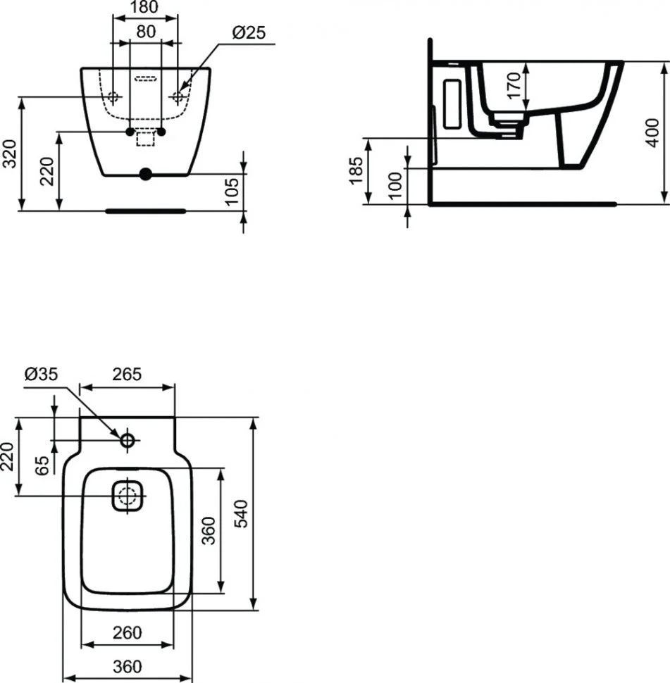Биде напольное Ideal Standard STRADA II (T854601) с крепежом для полностью скрытого монтажа T297101