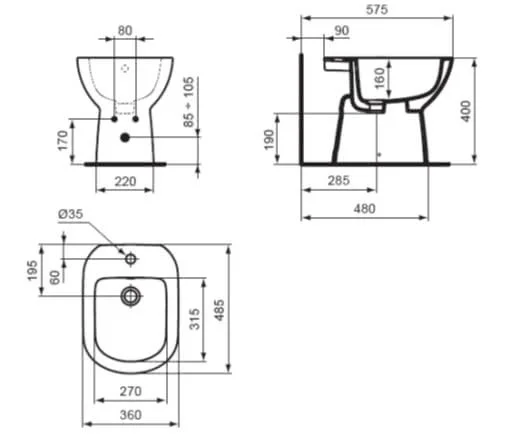 TEMPO Напольное биде, с 1-м отверстием под смеситель, с крепежом TT0257919
