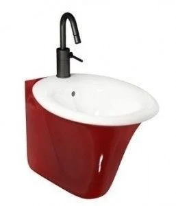 Биде подвесное HATRIA SCULTURE EVENTO YXKTB5. В комплекте с керамическими крепежными накладками. Установка с универсальным кронштейном для подвесной сантехники. Одно отверстие под смеситель готово, с отверстием перелива. Цвет красный снаружи, белый изнутри.