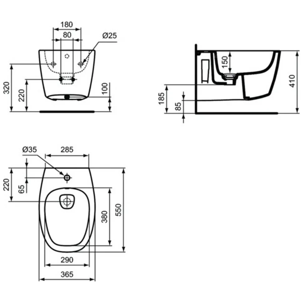 Биде подвесное Ideal Standard DEA T509801 с 1-м отверстием под смеситель