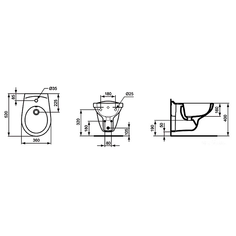 Eurovit подвесное биде, 1 отверстие под смеситель.