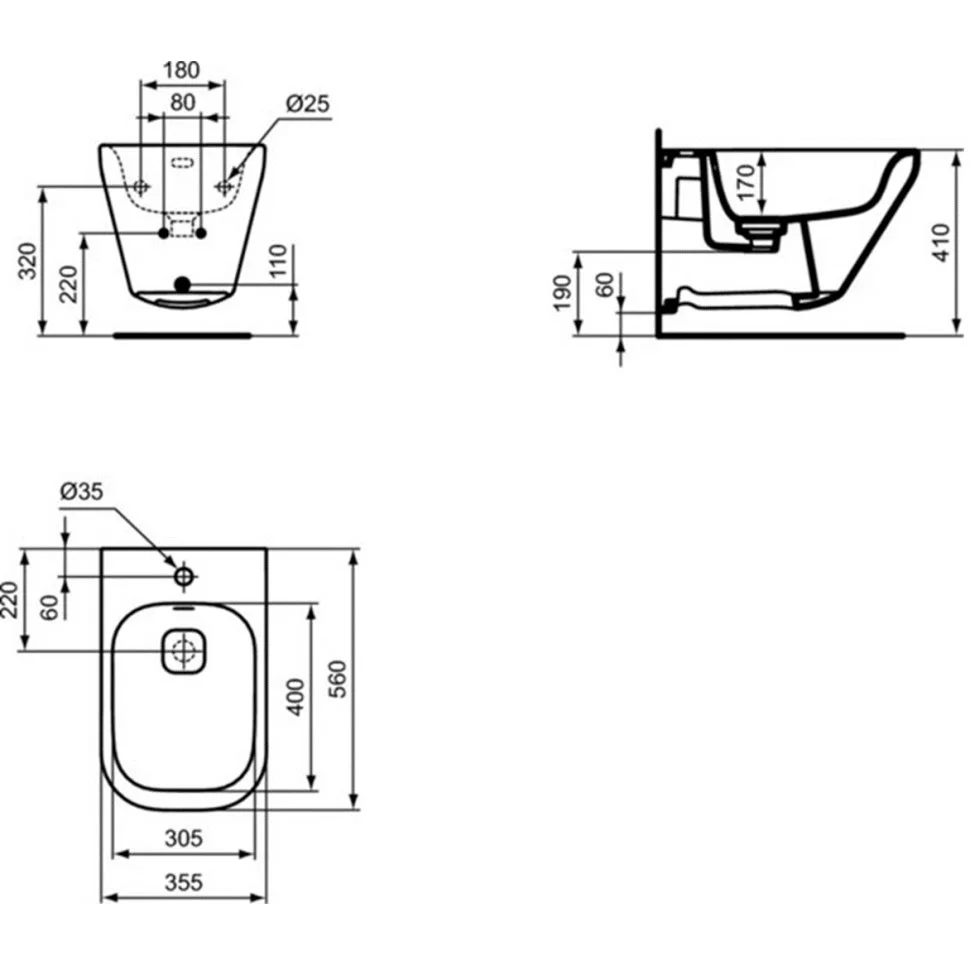TONIC II Подвесное биде, с крепежом TT0299327 (для полностью скрытого монтажа), с керамической накладкой слива