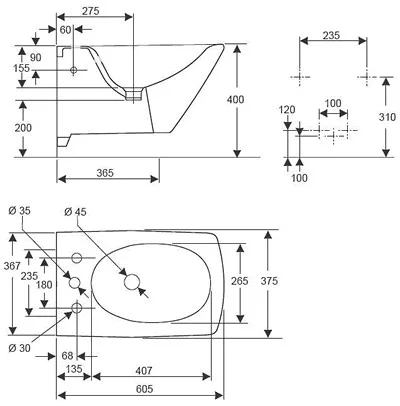 Ove 36х54х28,8см, биде, с одним отверстием для смесителя, арт. E1586-00, Jacob Delafon