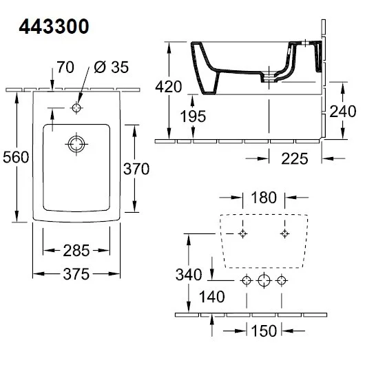 - Для 1-позиционного смесителя, отверстие для смесителя выбито