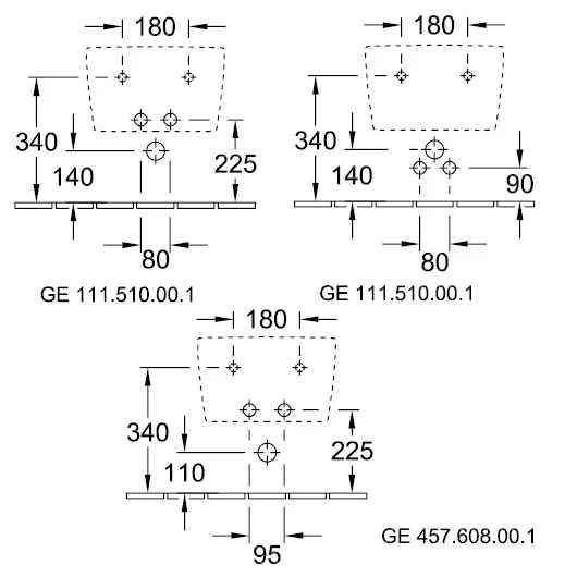 - Для 1-позиционного смесителя, отверстие для смесителя выбито
