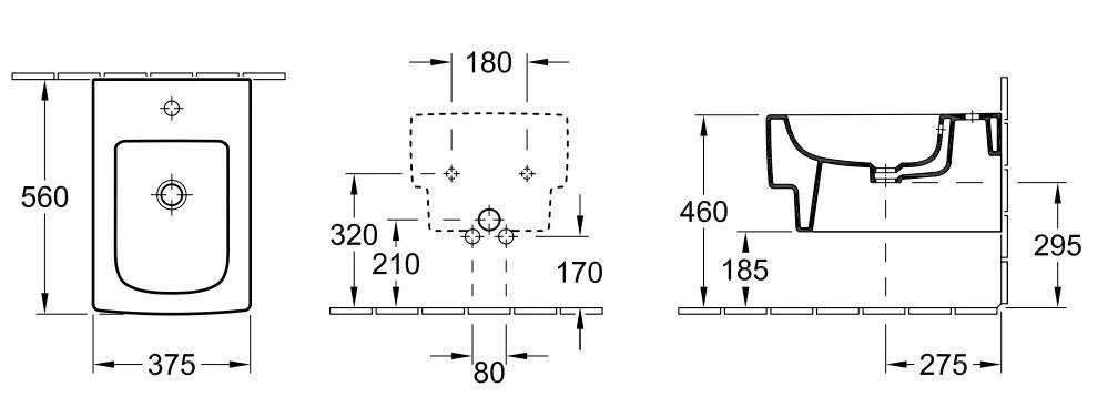 - Для 1-позиционного смесителя, отверстие для смесителя выбито