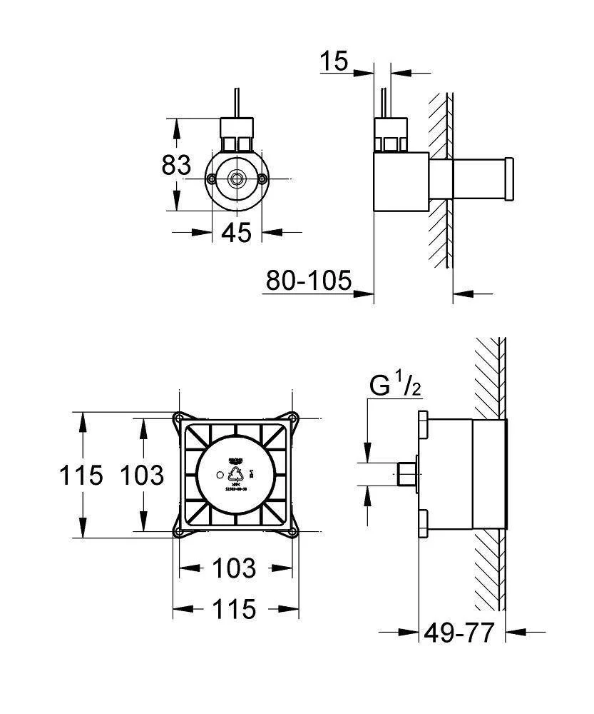 - - 1 встраиваемый модуль для генератора пара (115×115×49-77 мм)
