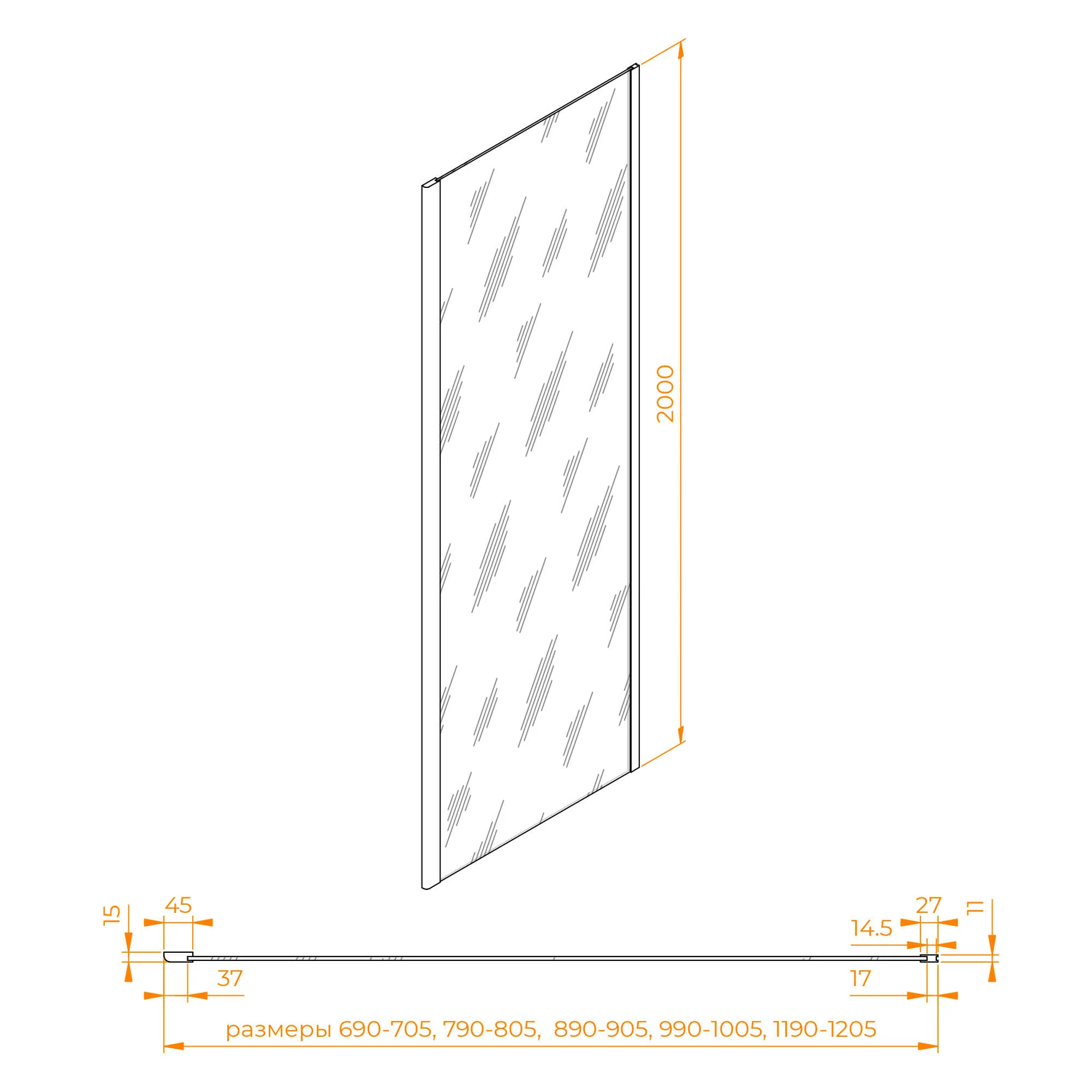 Боковая стенка RGW Z-050-3 700 мм 352205307-11 хром