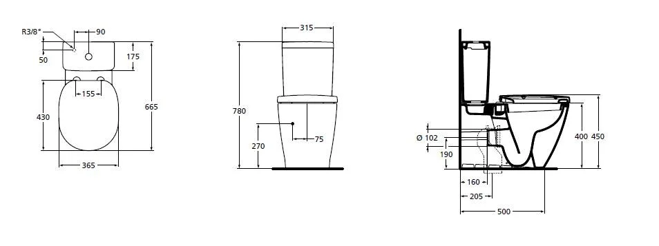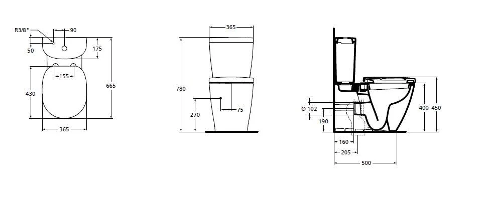 Напольный пристенный унитаз для монтажа с бачком, горизонтальный выпуск, с крепежом TT0257919.