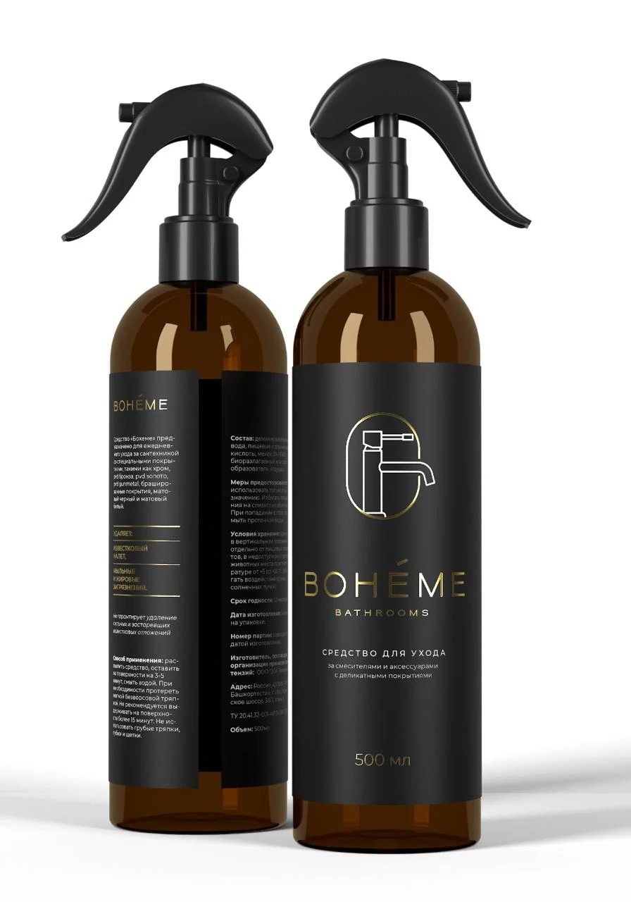 Средство Boheme предназначено для ежедневного ухода за сантехникой со специальными покрытиями, такими как хром, pvd бронза, pvd золото, pvd gunmetal, брашированные покрытия, матовый черный и матовый белый.