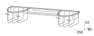 Держатель стаканов выполнен в двух вариантах. Один из вариантов предлагает упрощенный держатель высотой 52 мм для одного стакана. Второй вариант представляет собой комбинацию полочки для гигиенических предметов и двух держателей стаканов по бокам с дополнительными креплениями для зубных щеток (4 шт.). Эта конструкция наиболее удобна и практична.