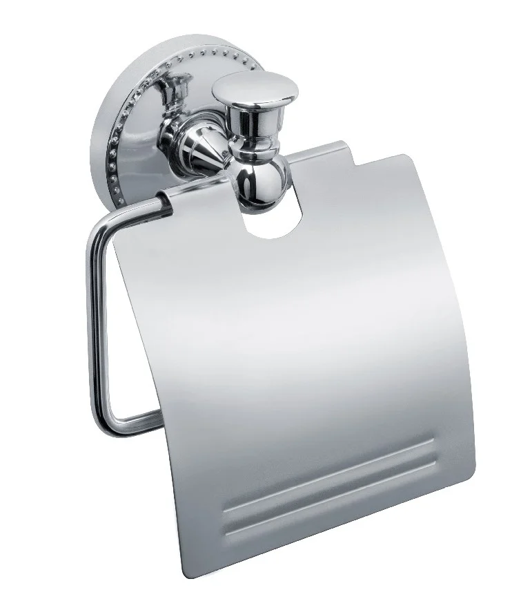 Настенный держатель туалетной бумаги с крышкой. Материал - хромированный металл.