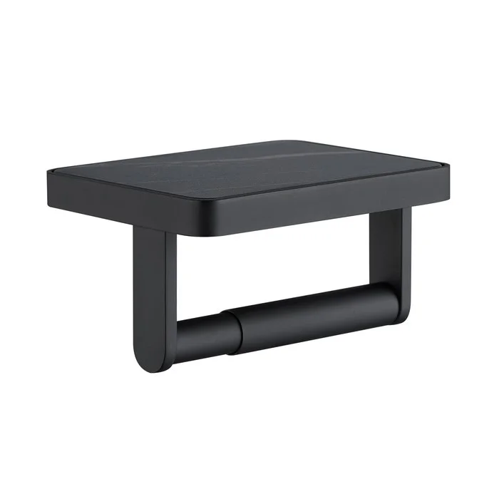 Держатель туалетной бумаги Iddis с полкой со вставкой из черного камня On-X (ONXBL03i43)