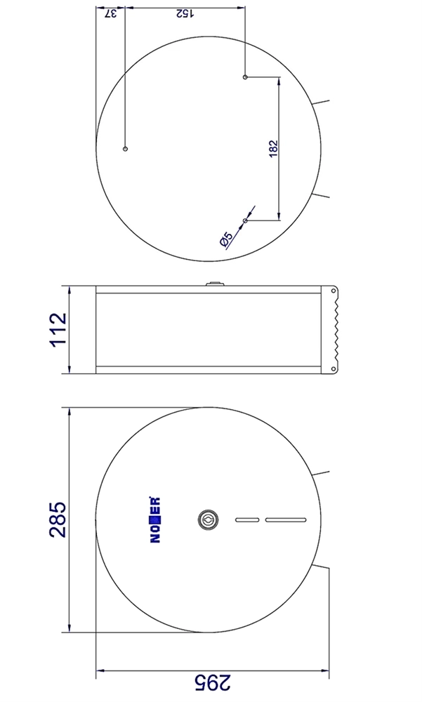 Диспенсер для туалетной бумаги круглый из стали белый. Оборудован антивандальным замком и окошком для контроля наличия туалетной бумаги. Максимальный диаметр рулона 280 мм