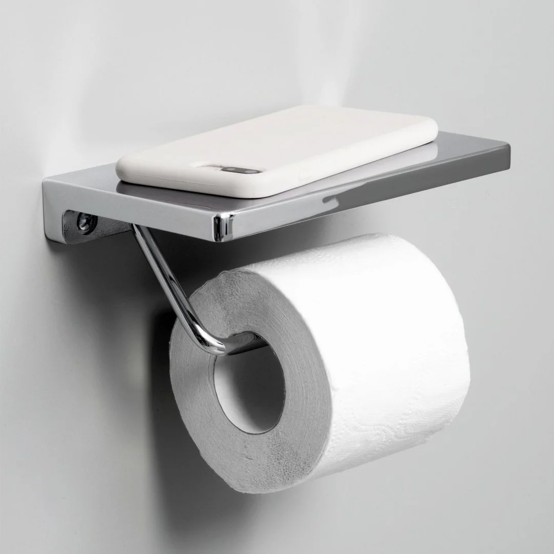 Держатель туалетной бумаги WasserKRAFT K-1425 с полочкой для телефона хром