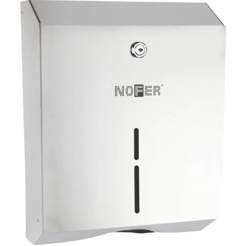 Диспенсер для бумажных полотенец прямоугольный из нержавеющей стали матовый c фронтальной загрузкой бумаги и замком. Также данный диспенсер оборудован окошком для контроля наличия бумаги.
