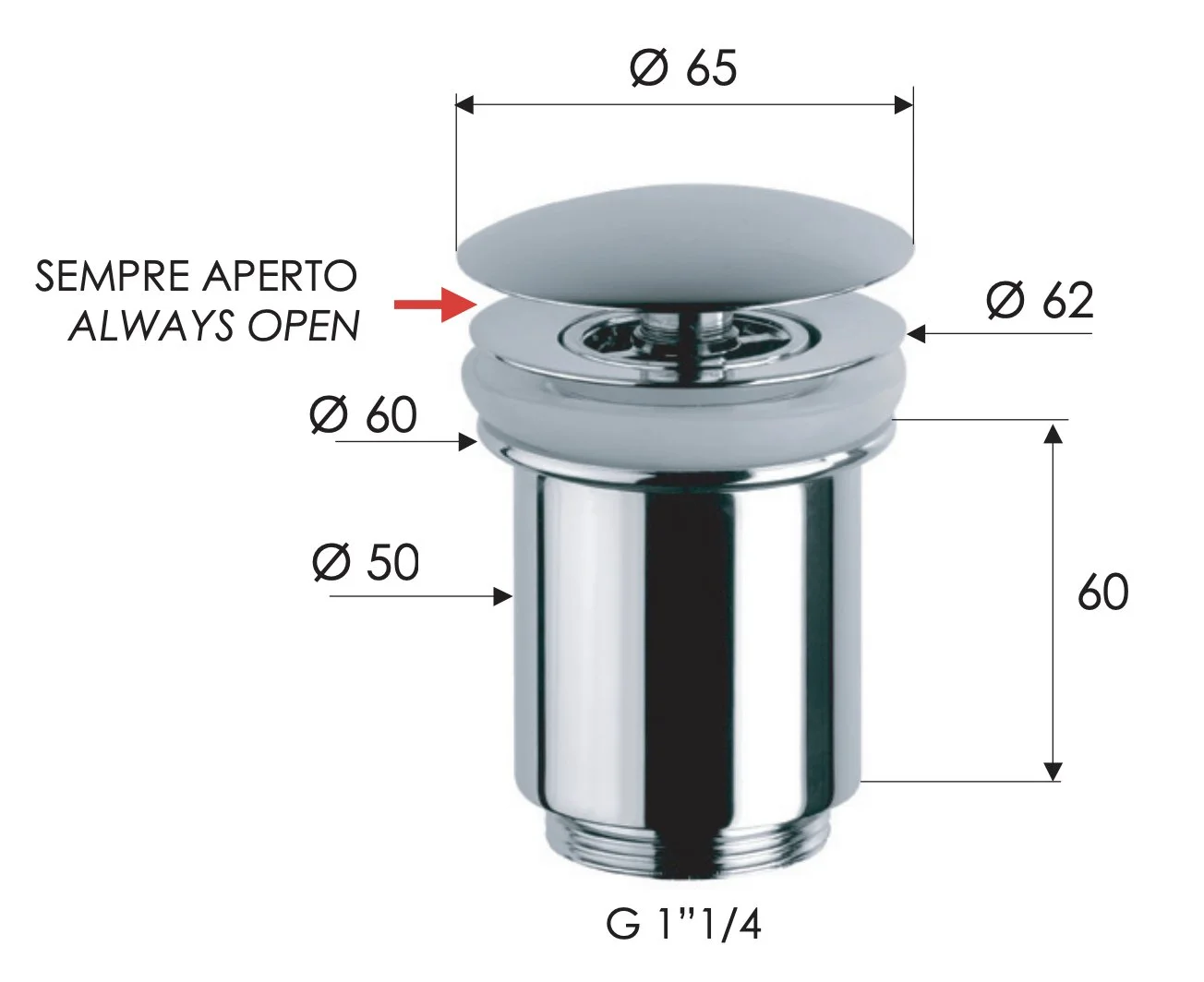 Донный клапан Remer 907114 незапираемый без перелива