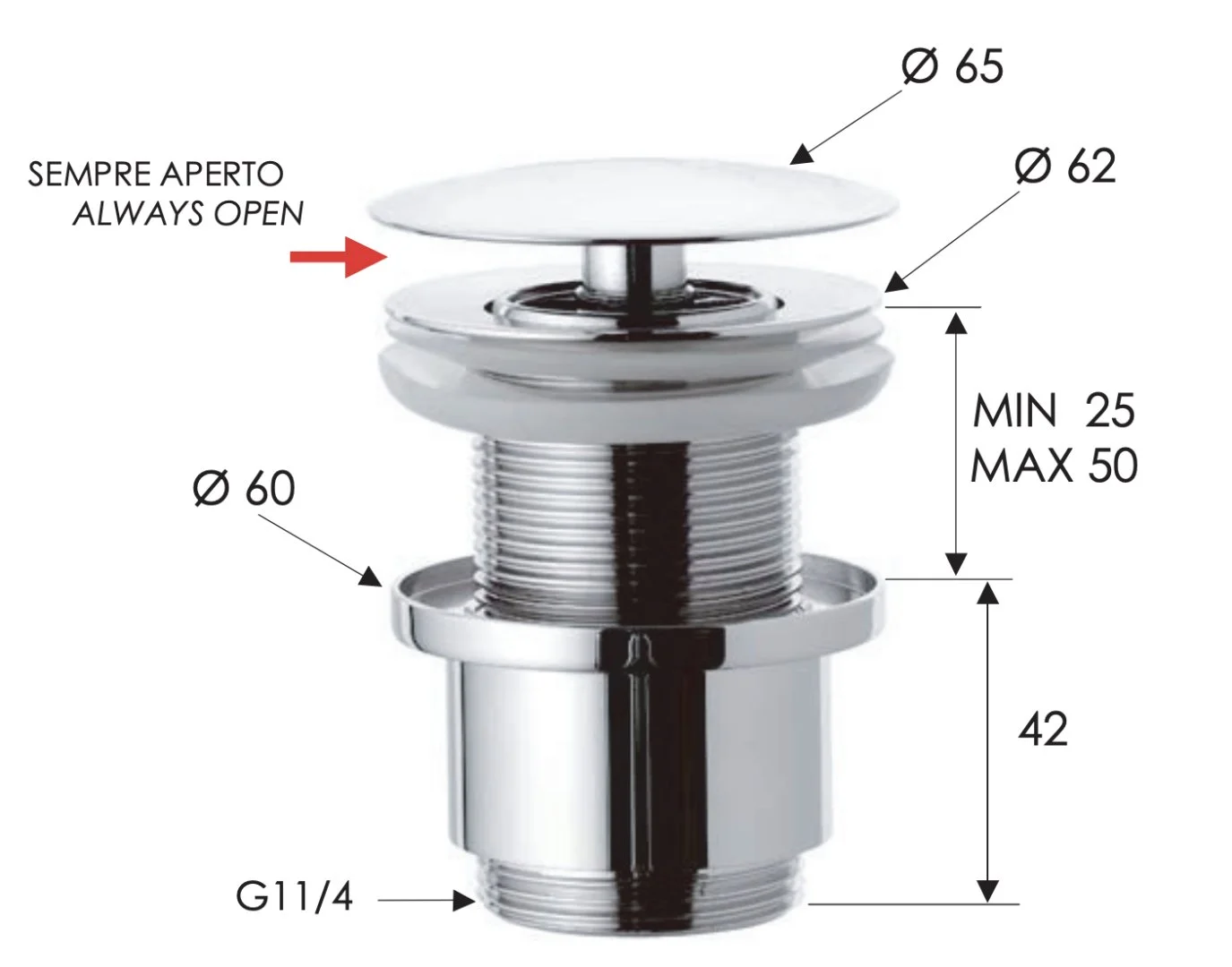 Донный клапан Remer 9072BG незапираемый без перелива, золото брашированное