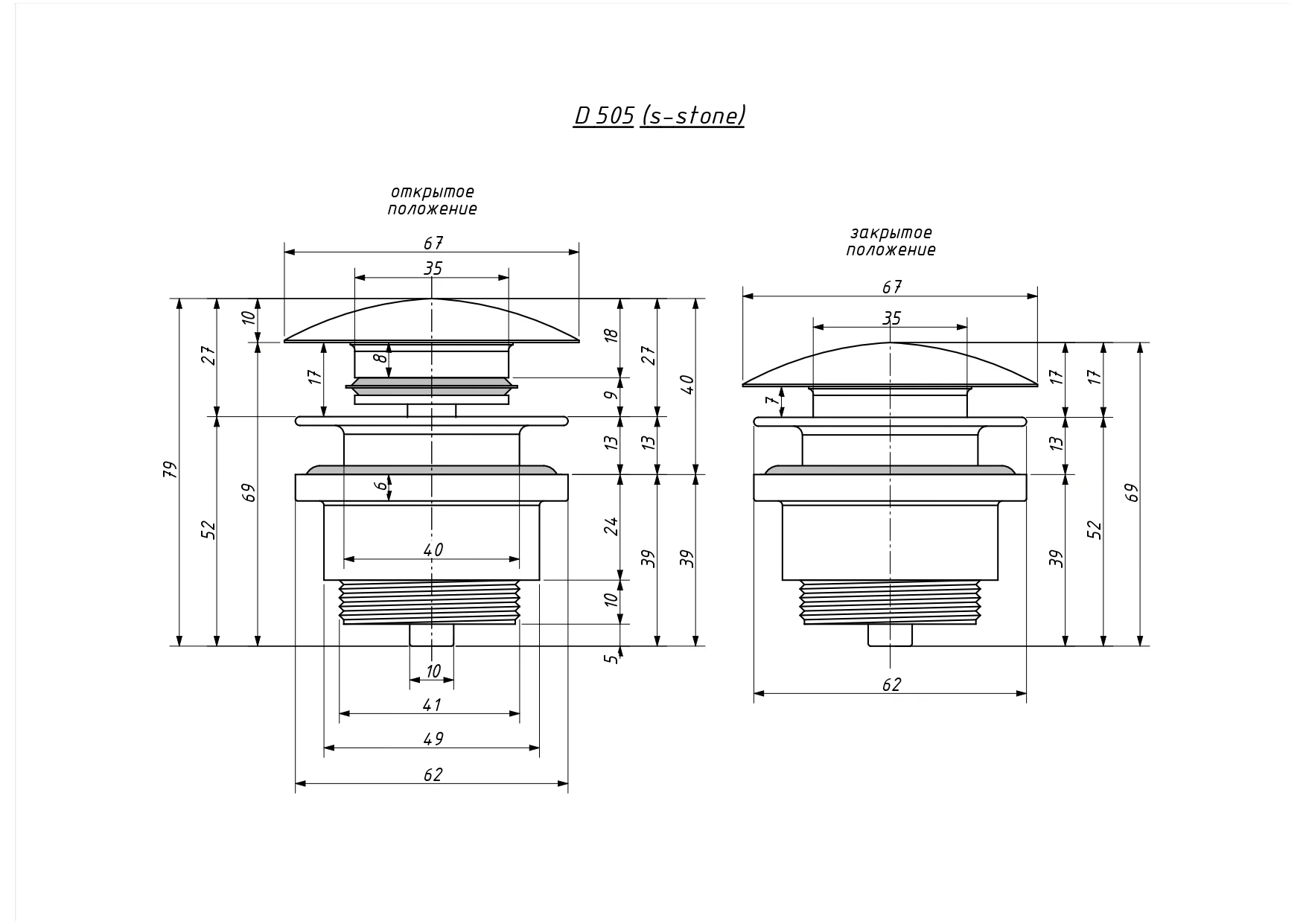 Донный клапан окрашивается в цвет основного изделия по палитре RAL Classic.
