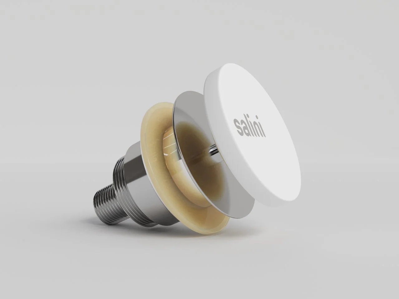 Аккуратная крышка клапана становится естественным продолжением дна, не слишком выделяясь на фоне всей ванны или раковины. Она может быть выполнена как из материала S-Stone, так и материала S-Sense с матовой или глянцевой поверхностью.