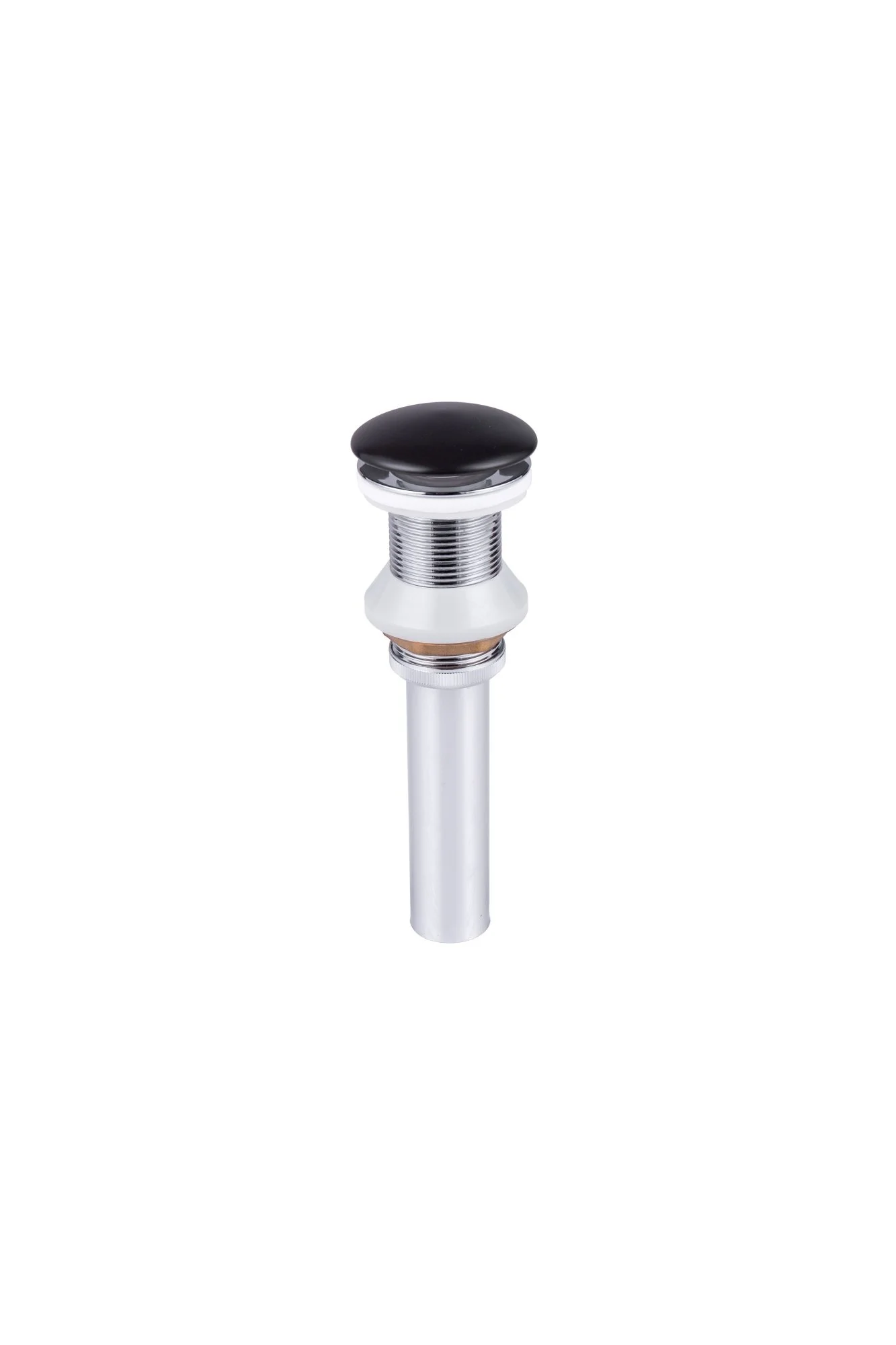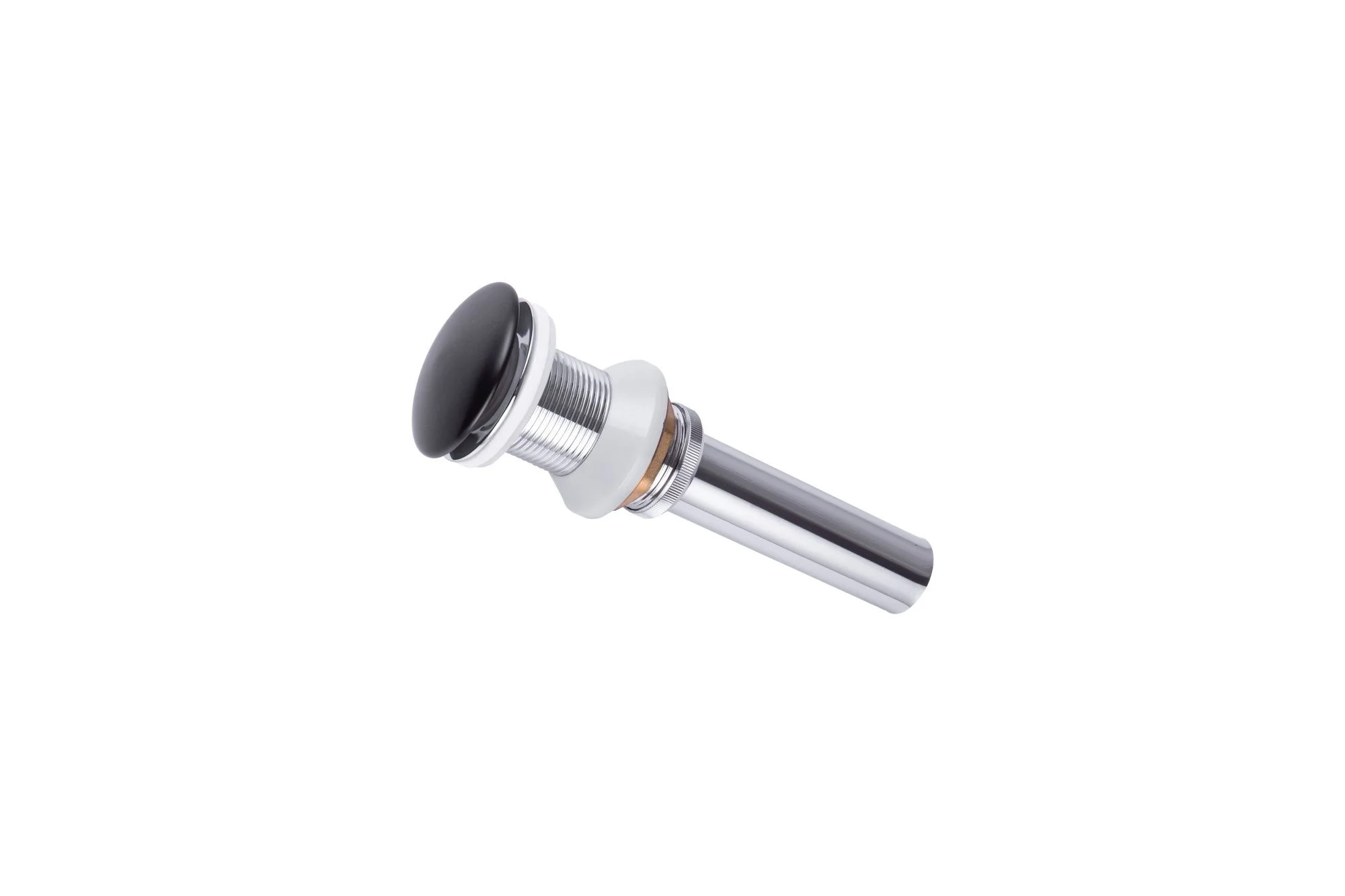 Механизм слива клик клак с пружиной рассчитан на 50 000+ циклов работы. Корпус донного клапана выполнен из долговечной латуни, а хромированное покрытие защищает его от коррозии. Универсальная резьба делает легким монтаж выпуска с латунными и пластиковыми сифонами.