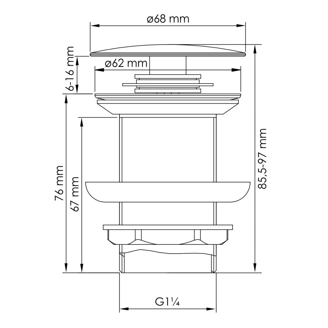 Донный клапан имеет функцию Push-up. Простым нажатием клапан закрывается, что позволяет легко набрать воду в ванну или раковину. Открывается он также легко, для этого необходимо вновь нажать на него.