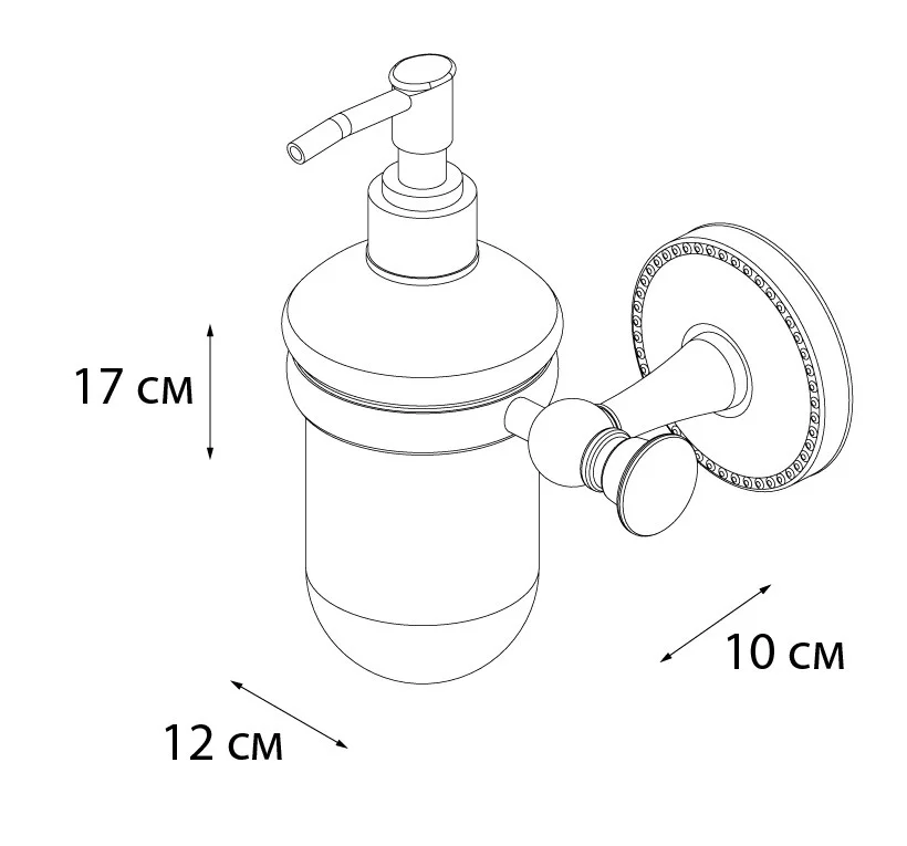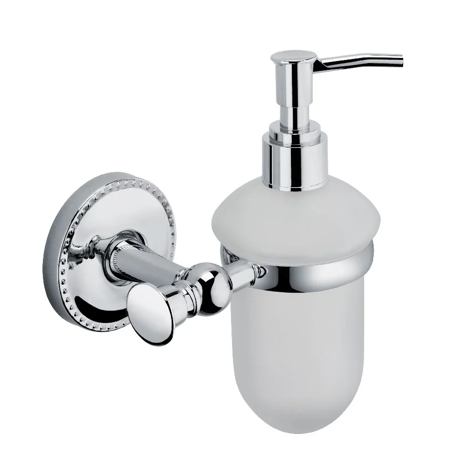 Настенный дозатор жидкого мыла. Дизайн в ретро стиле, материалы - хромированный металл, матовое стекло.