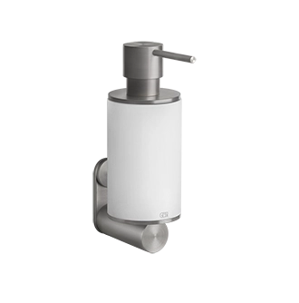 Дозатор жидкого мыла Gessi 316 с держателем механический (нажимной) ширина мм-75 глубина мм-149 высота мм-209 тип установки-настенный материал колбы-композит неолит цвет колбы-белый цвет дозатора-черный
