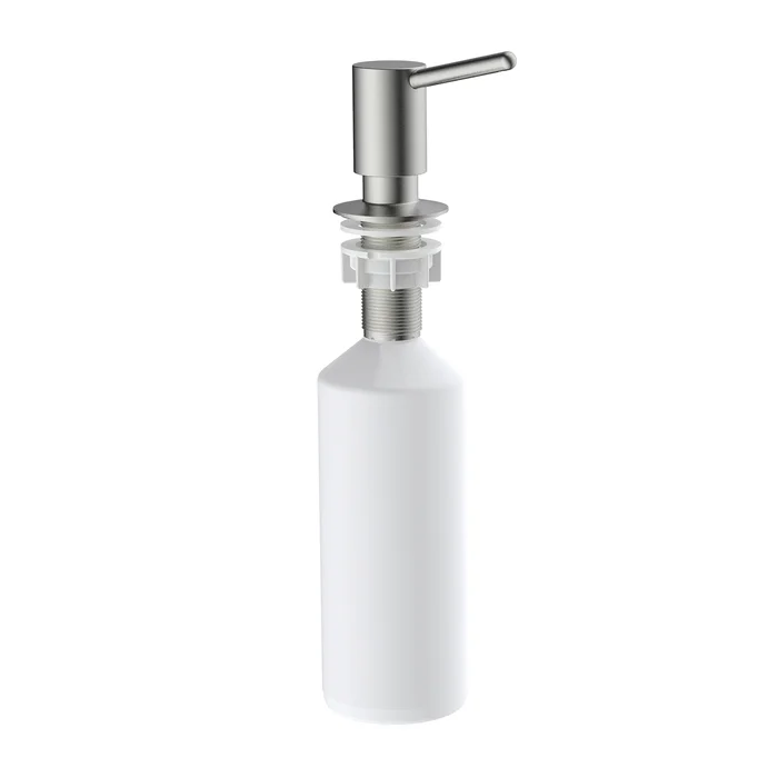 Встраиваемый в столешницу дозатор – незаменимый аксессуар для кухни, где ничто не должно отвлекать от красивого интерьера. Выглядит эстетично и занимает минимум места, освобождая его для действительно важных вещей. Сатиновый цвет и универсальный дизайн сочетаются со смесителями и мойками IDDIS® и других производителей. Отверстие для установки – 29-37 мм.