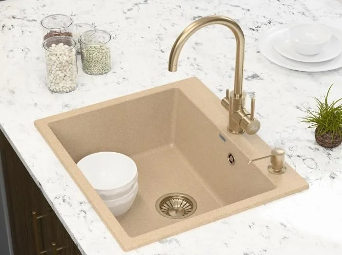 Дозатор для кухни или ванной, встраиваемый, объемом 350 мл, изготовлен из латуни и пластика.
