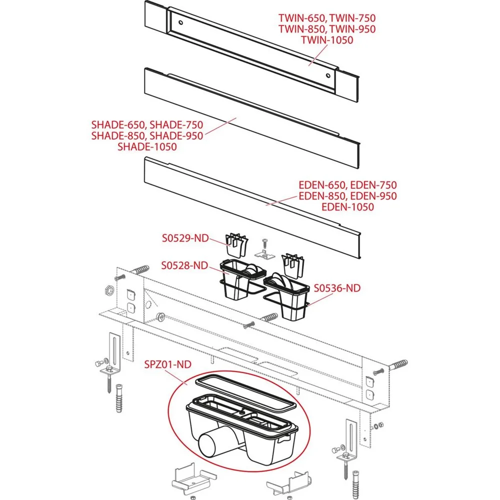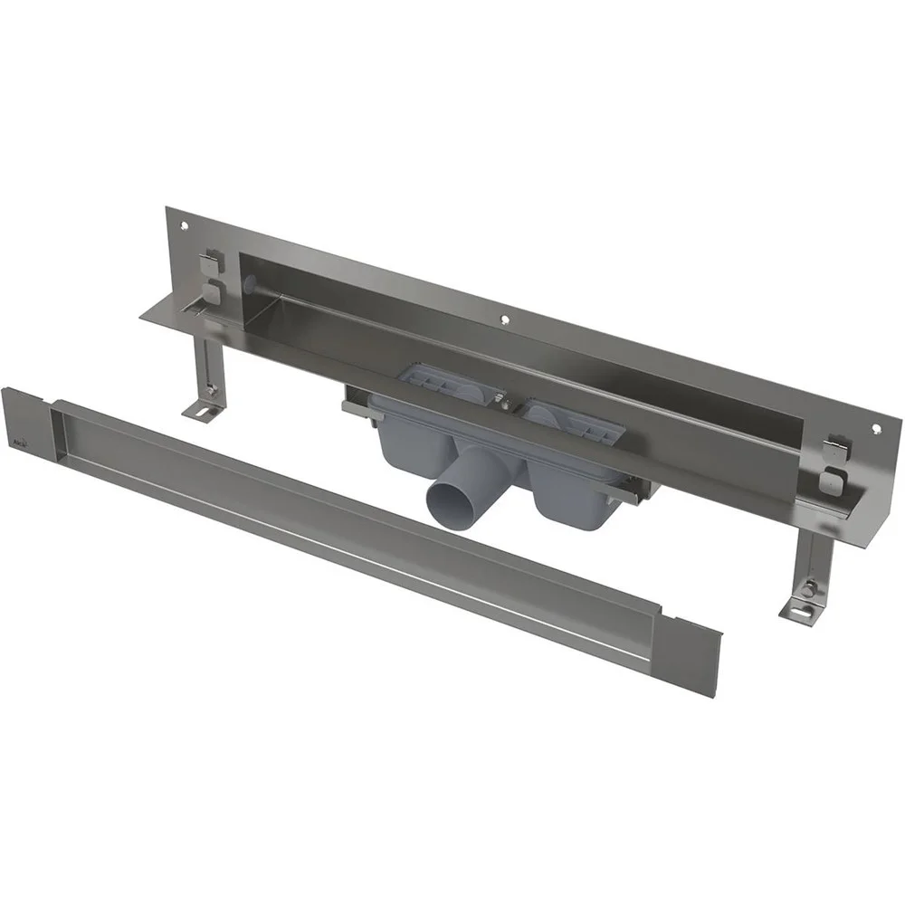 Вода втекает в желоб через зазор между краем напольной плитки и защитной планкой желоба, которая является частью облицовки стены