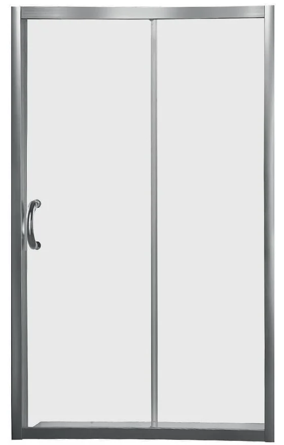 Душевая дверь, представляющая собой одну стеклянную створку в алюминиевом профиле.