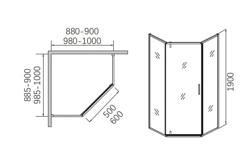 Душевая дверь CeramaLux CL1006-90 распашная трапецевидная, хром