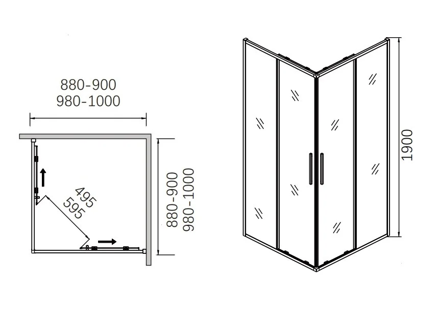 Душевая дверь CeramaLux CL1006B-100 распашная трапецевидная, черный матовый