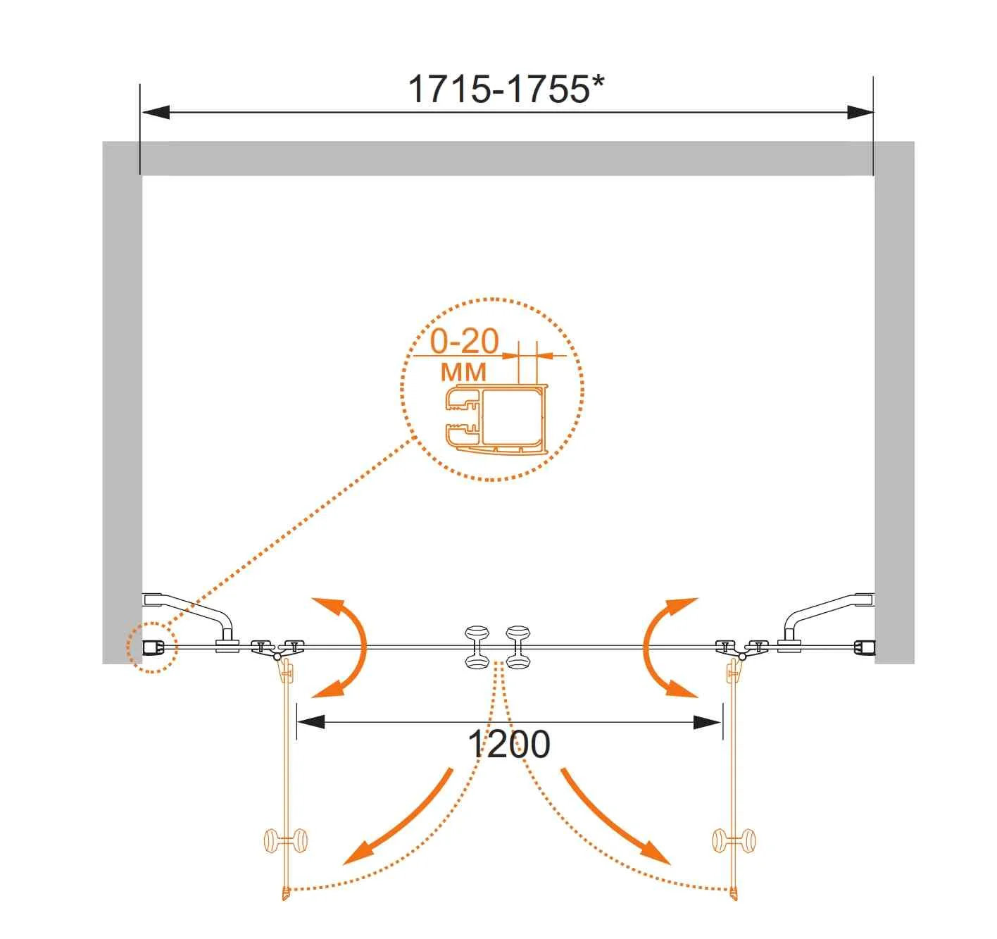 Купить Душевые двери производства Cezares (Италия), код товара: 256768 можно выгодно в Сантемо.ру: