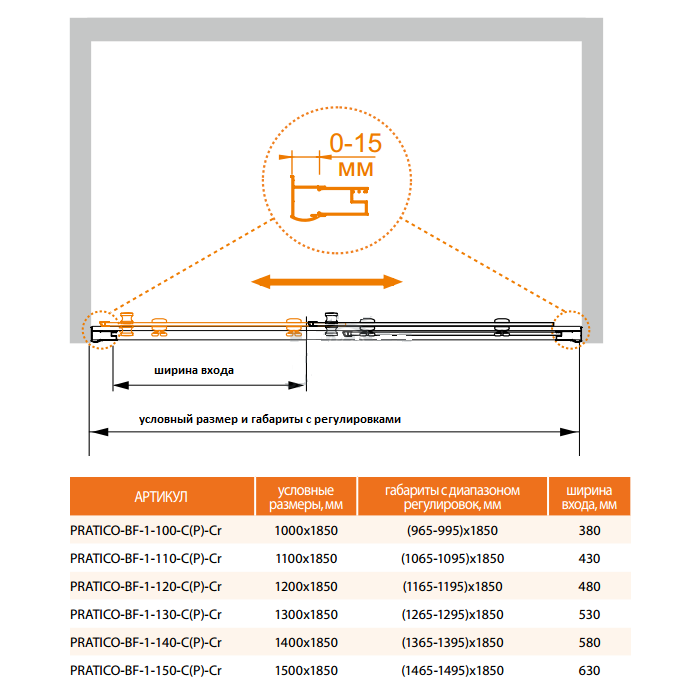 Купить Душевые двери производства Cezares (Италия), коллекция Pratico BF-1, код товара: 112884 можно выгодно в Сантемо.ру: