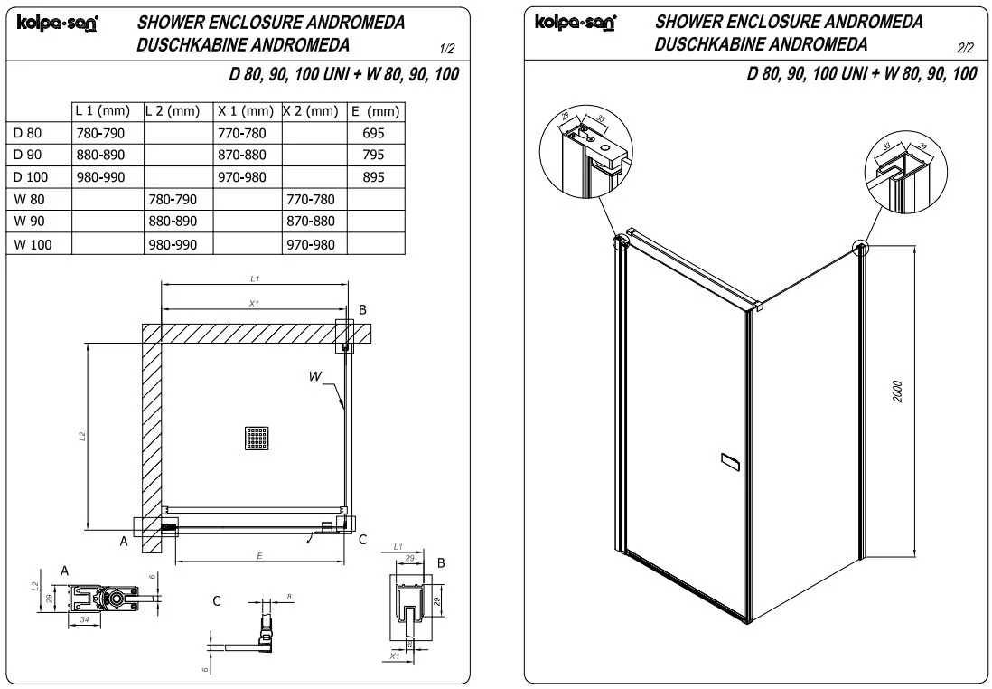 Душевая дверь Kolpa-San ANDROMEDA D 100 профиль серебро, стекло прозрачное 516530