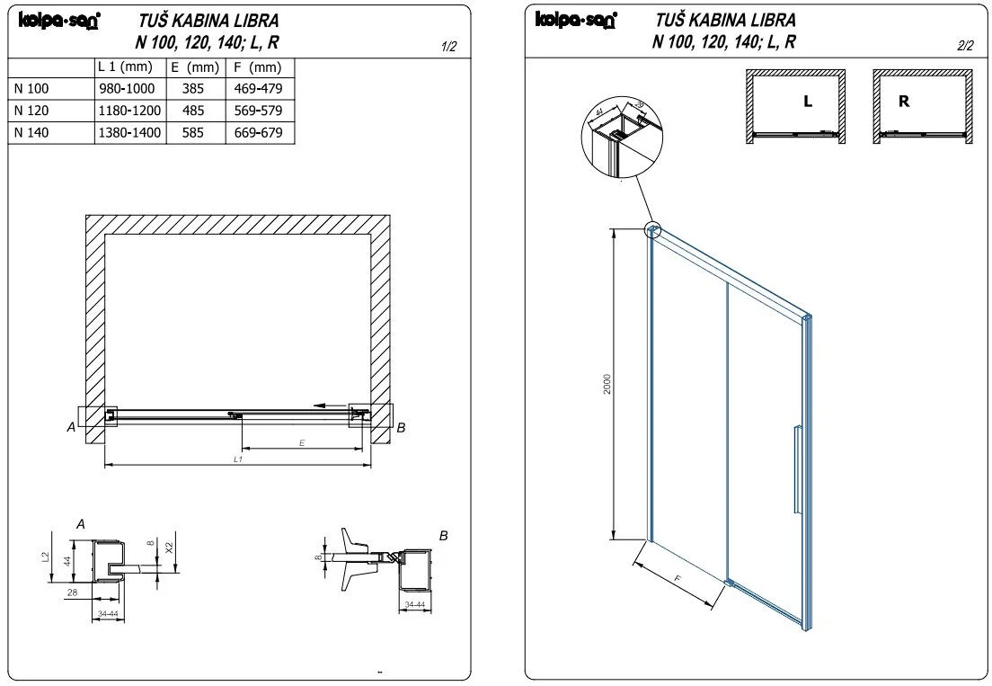 Душевая дверь Kolpa-San LIBRA N 100 L профиль черный, стекло прозрачное 517470