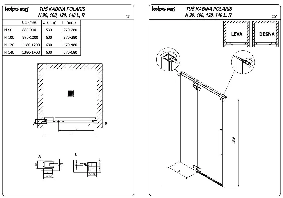 Душевая дверь Kolpa-San POLARIS N 90 R профиль черный, стекло прозрачное 515960