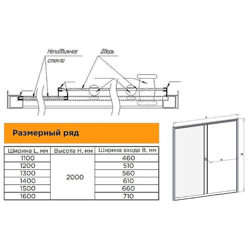 Душевая дверь Radomir Вита 1100х2000 1-63-6-0-0-1071 раздвижная, матовая, профиль черный