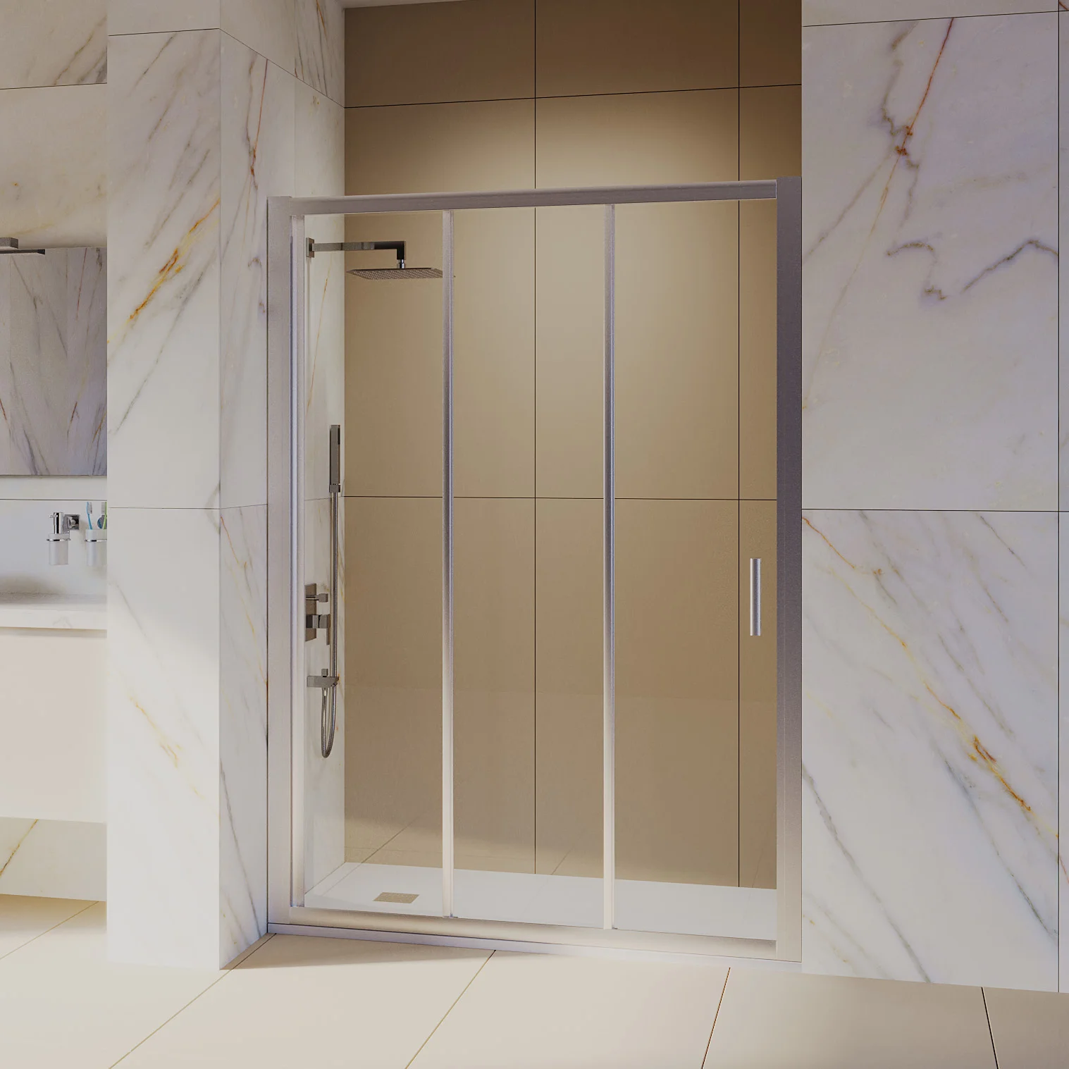 Профиль двери регулируемый, что позволяет легко подстроить его под размер вашей ванной комнаты. Роликовый подшипник обеспечивает плавное скольжение дверей и предотвращает их заедание.