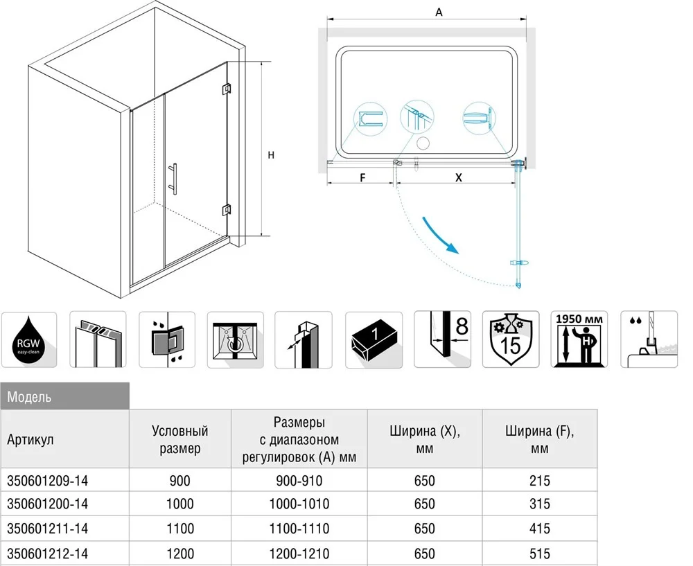 Купить Душевые двери производства RGW (Германия.), коллекция Hotel, код товара: 209639 можно выгодно в Сантемо.ру: